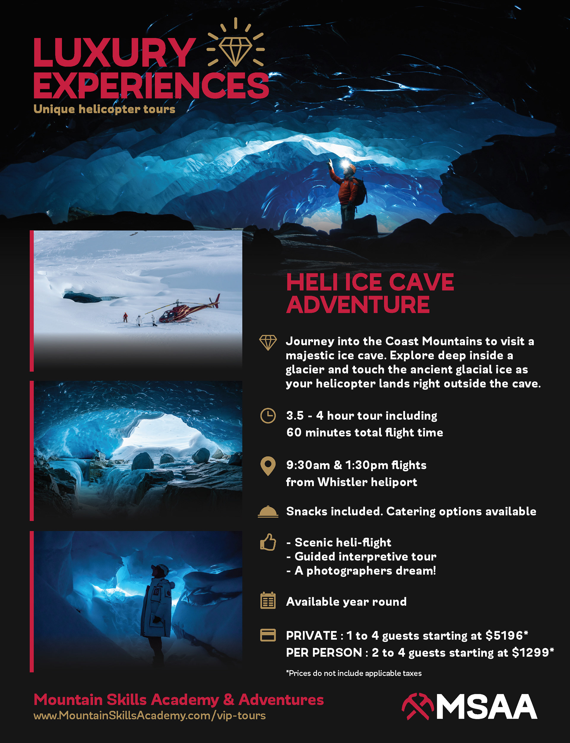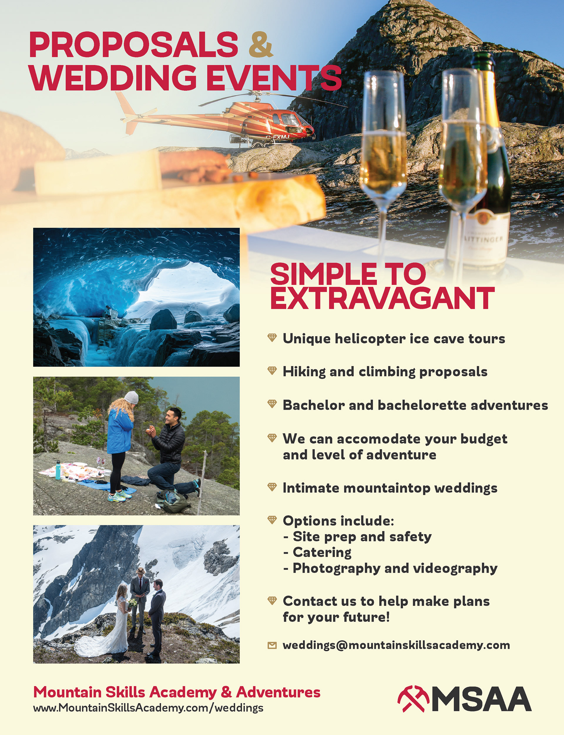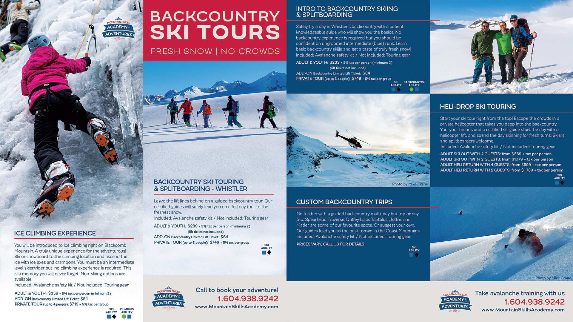 Peak Pictures managed all aspects of marketing material for a busy mountain guiding bureau Mountain Skills Academy & Adventures including videography, photography, the design and production of all print media, as well as development and data migration of a new website when companies merged.